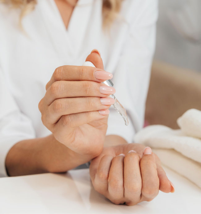 - Aceite Regenerador de Cutícula: con vitamina E y ceramidas, hidrata profundamente y mejora la apariencia de la cutícula y la uña, devolviendo su brillo y elasticidad.